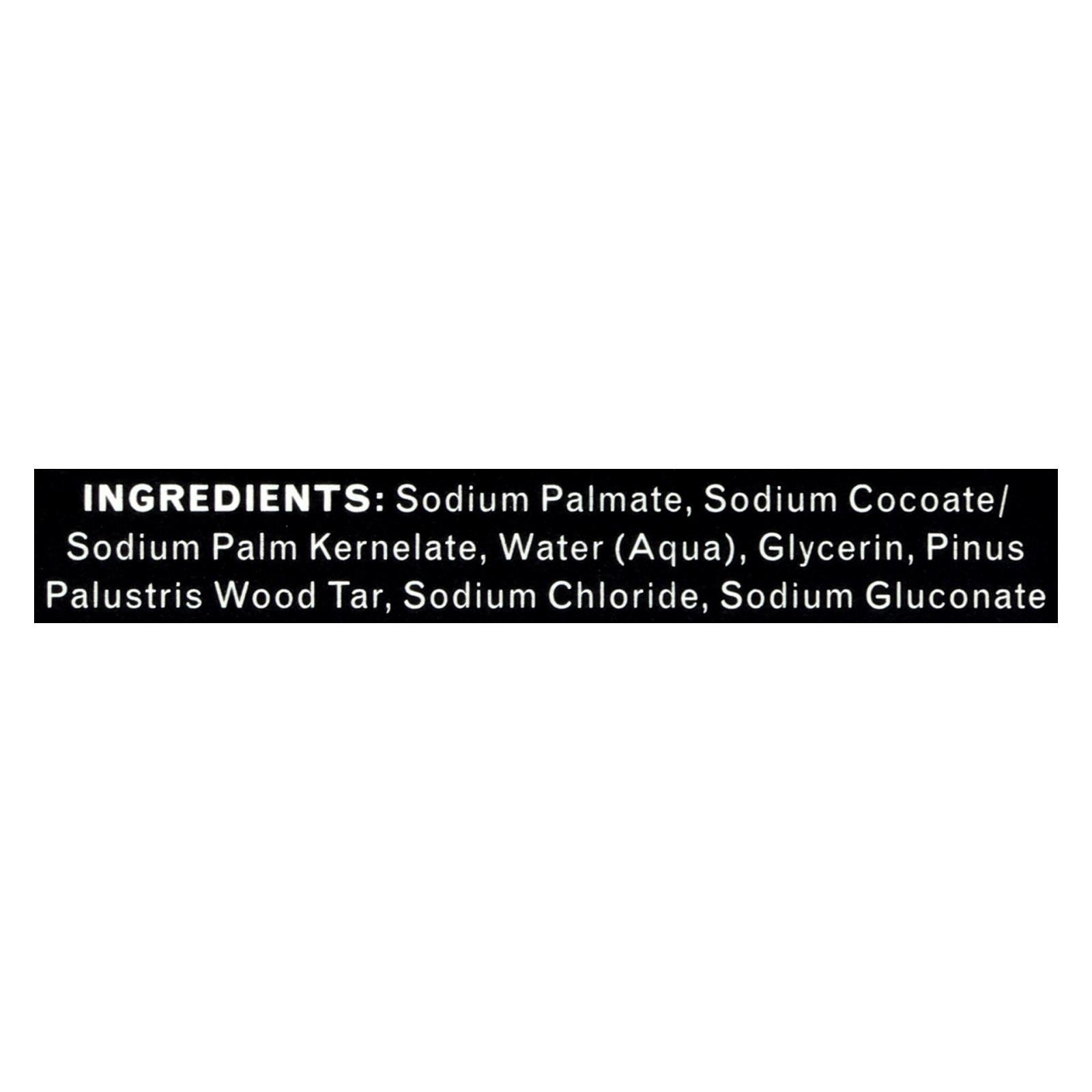 ingredients : sodium palmate;sodium cocoate/sodium palm kernelate;water;aqua;glycerin;pinus palustris wood tar;sodium chloride;sodium gluconate