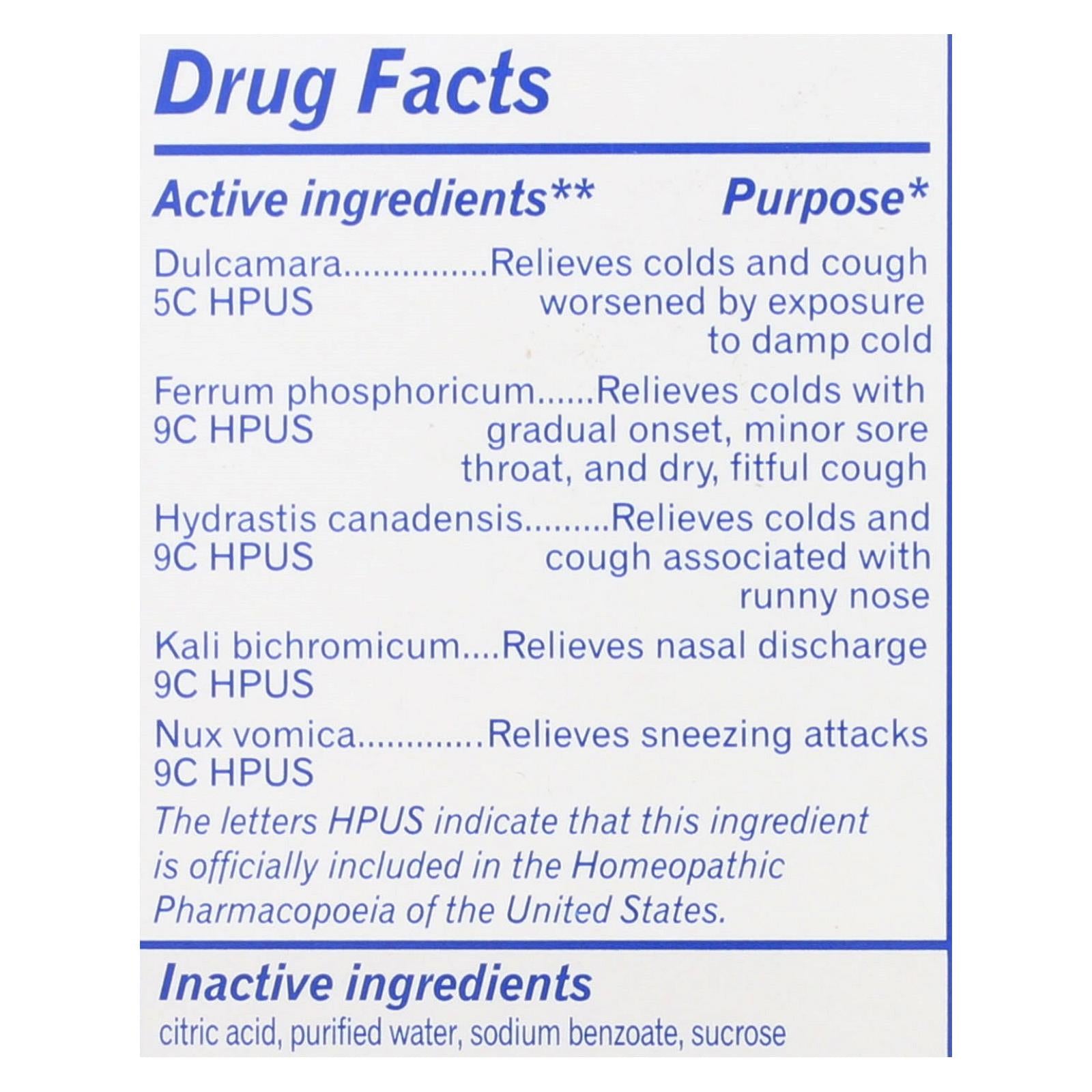 - Contains natural active ingredients like dulcamara, ferrum phosphoricum, and hydrastis canadensis to target symptoms effectively.