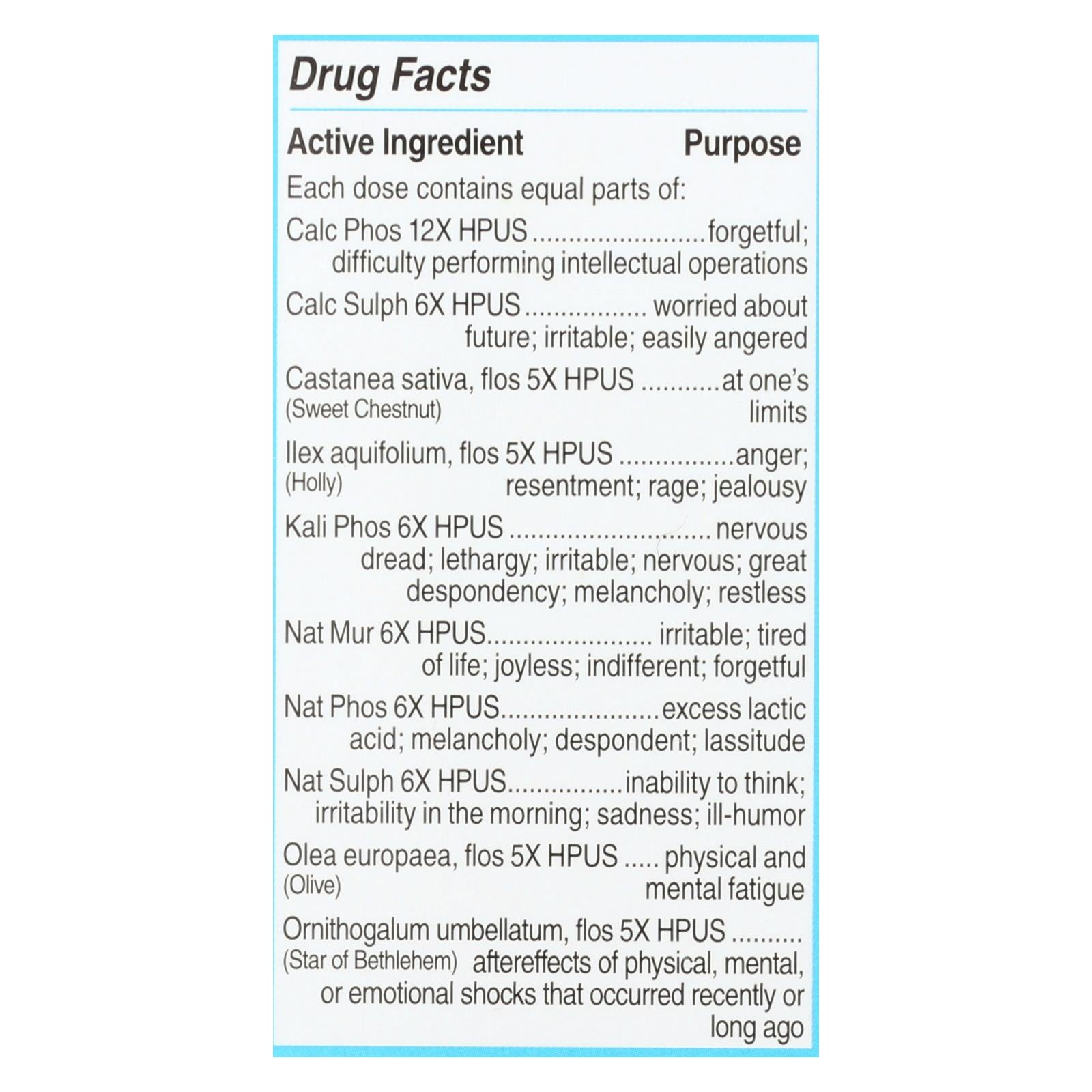 • Formulated with soothing ingredients such as olive, holly, and sweet chestnut to target irritability, lethargy, and emotional shock