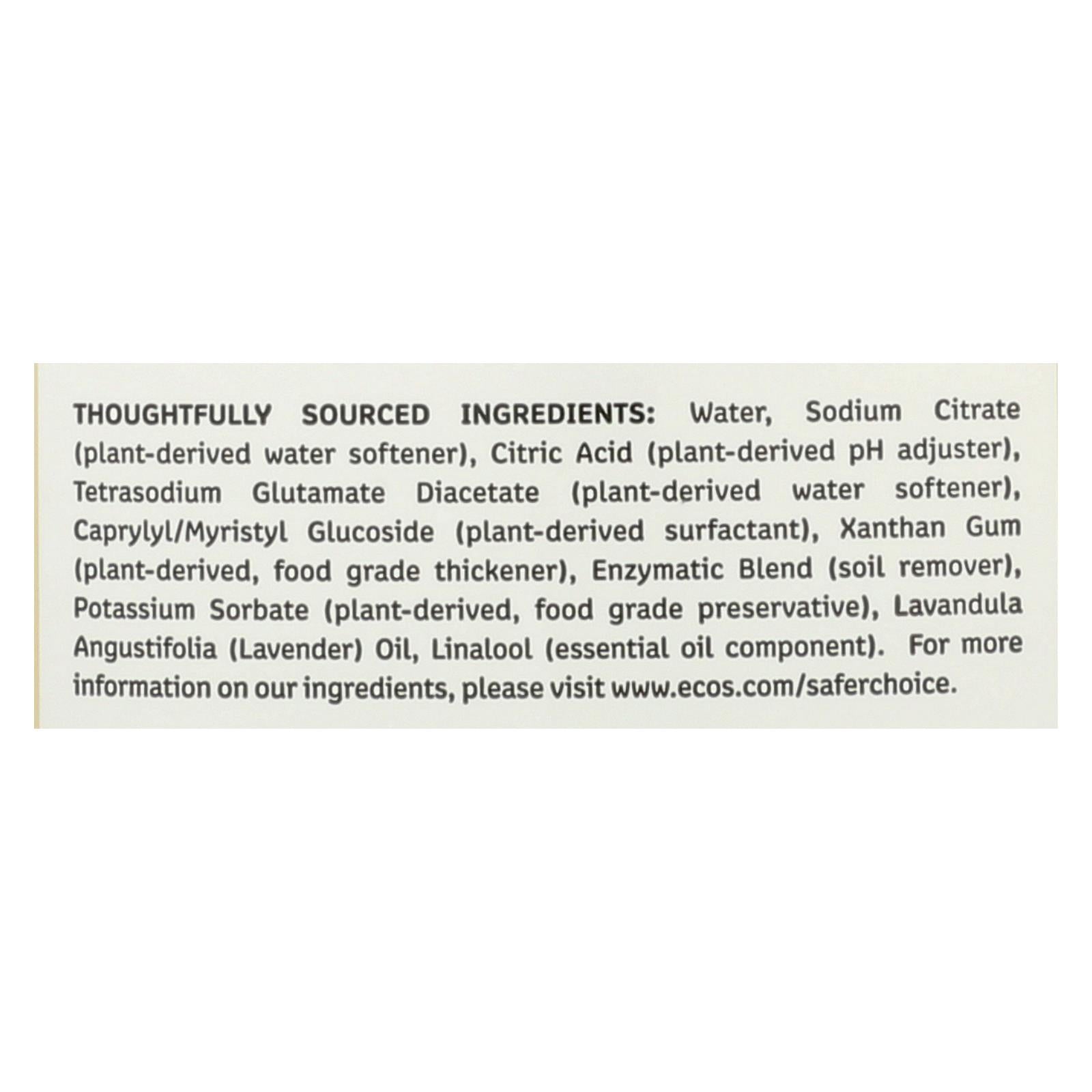 Ecos automatic dishwasher gel, lavender is extraordinarily effective at cleaning tableware and kitchen tools without etching. Plant power washes away residues and leaves an etch-free shine. This gel comes in a 40 fl. Oz. Bottle and is made without dyes, parabens, phosphates, and phthalates. It’s readily biodegradable, ph balanced and never tested on animals. See the facts panel for allergens and warnings.
