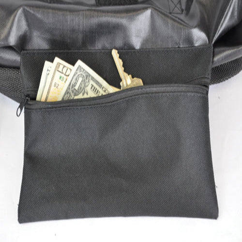• Internally hidden zippered 7"L x 9"W security pocket securely holds important items such as keys, wallets or money